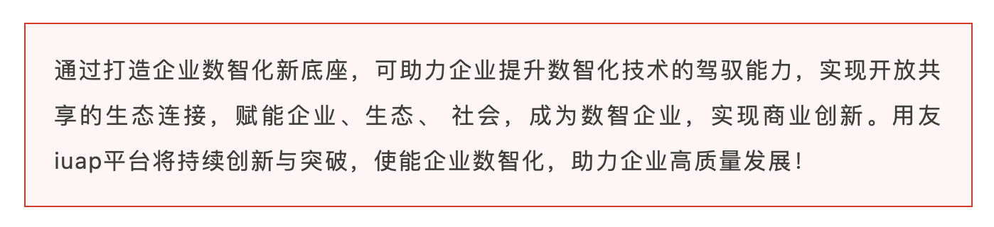 从1999年,UAP平台诞生,超过二十年的时间,经历了为企业提供统一的技术平台、企业互联网开放平台、向云原生技术不断试错与迭代升级、完成一大批超大型集团客户实践验证,到今天,以先进的技术和应用架构、统一平台和公共服务,打造企业数智化新底座。用友iuap保持专注、持续进化,用技术支撑企业的发展。
